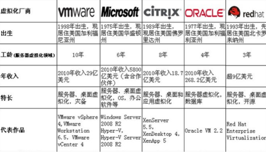 虚拟化技术厂商: