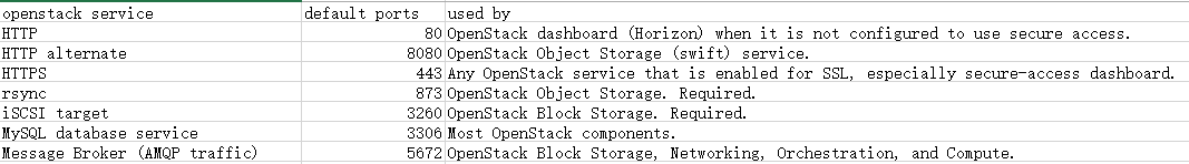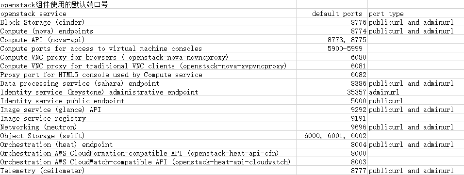 Openstack服务端口号 在 2019年6月21日2019年6月21日 上张贴 由 MartinHeOpenstack服务端口号已关闭评论 openstack组件使用的默认端口号 非openstack组件使用的默认端口号