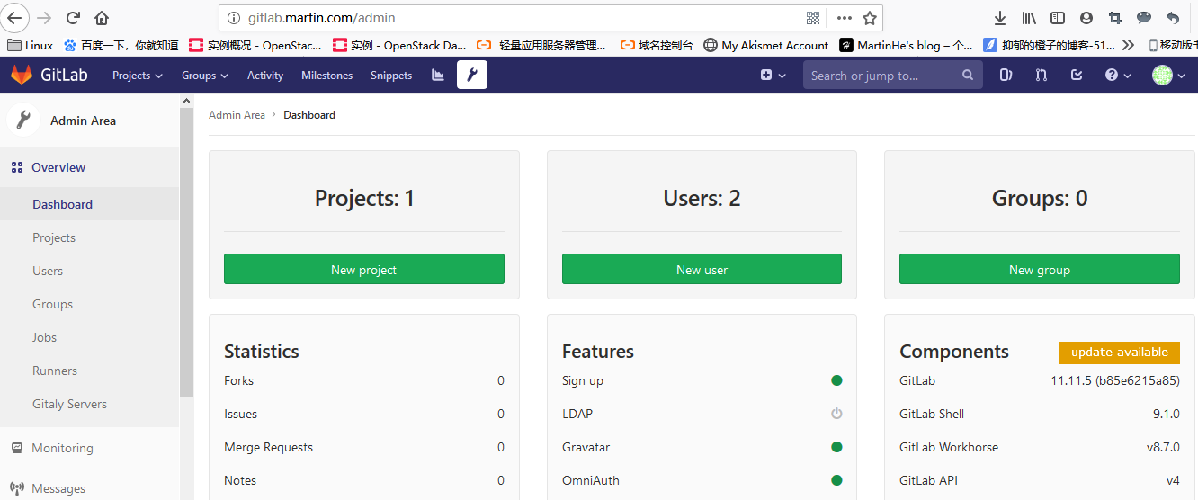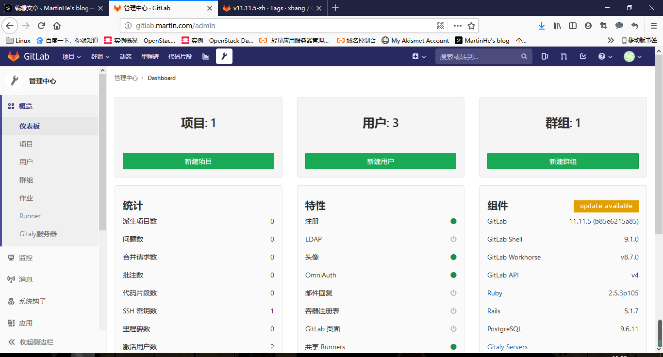 # gitlab-ctl restart #重启 gitlab