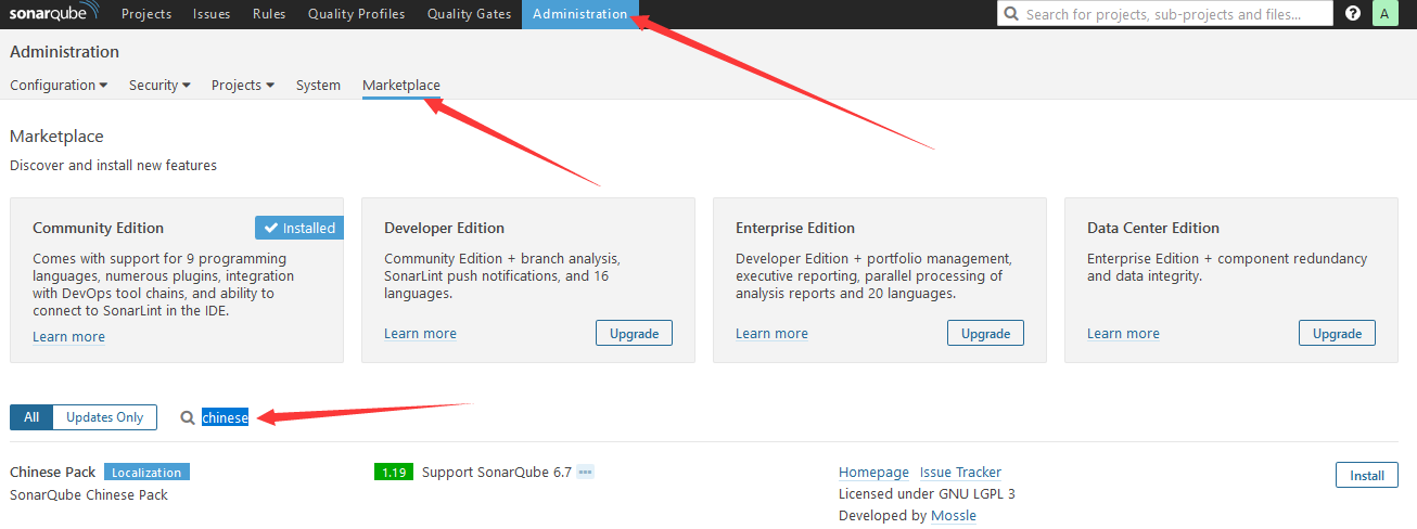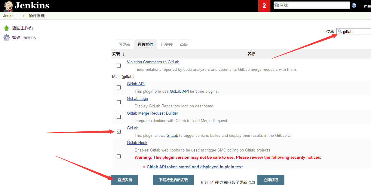如果当前服务器不连接外网,可gitlab下载插件后,导入到sonar插件目录/usr/local/sonarqube/extensions/plugins