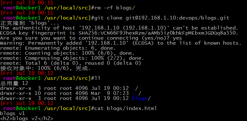 root@docker1 /usr/local/src]#git clone http://192.168.1.10/devops/blogs.git