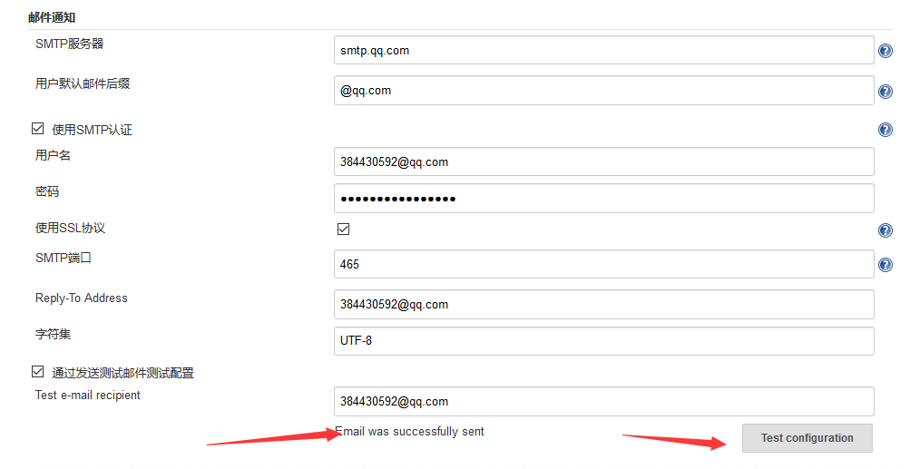 配置第三方邮件通知:
