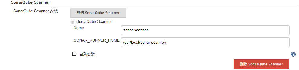 让Jenkins安装sonar scanner:可在线安装,如果提前部署了,指定scanner路径。