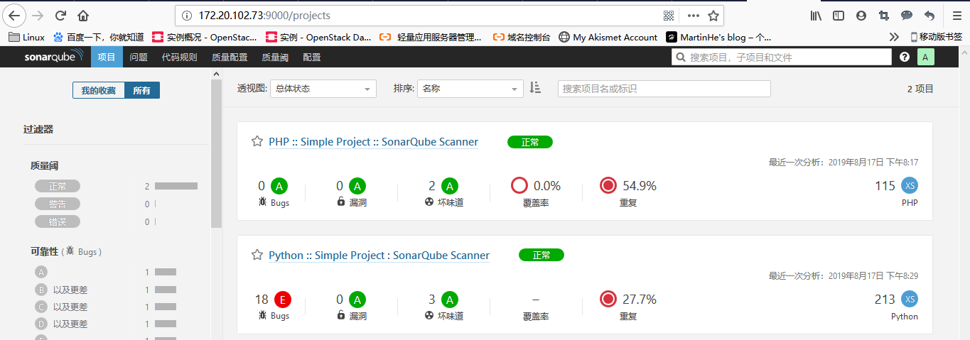 访问sonar-WEB界面:admin admin