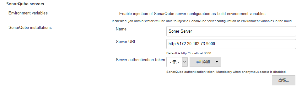 - Jenkins->系统管理->系统设置->SonarQube server